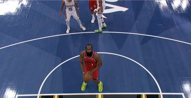 很快,哈登就开始大秀自己的进攻技法,先是单打锡安,连续胯下后利用节奏的变化甩开锡安,突破上篮得手。