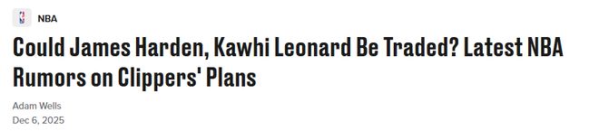 曝快船可能兜售哈登莱昂纳德!交易难度不同:小卡已被视为负价值