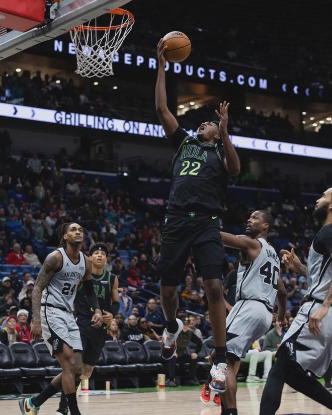 北京时间12月9日,NBA常规赛:鹈鹕132-135憾负马刺,马刺榜眼迪伦-哈珀和鹈鹕13号秀德里克-奎因都打出了亮眼数据。哈珀替补出战26分钟,投篮16中10,三分3中1,罚球2中1,拿到22分3板6助2失误,最后9秒上篮帮马刺反超。