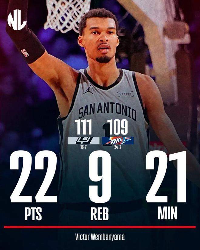 注意一点,文班亚马此前因为伤病缺席了12场比赛,这期间马刺取得了9胜3负,这是一个非常不错的信号。
